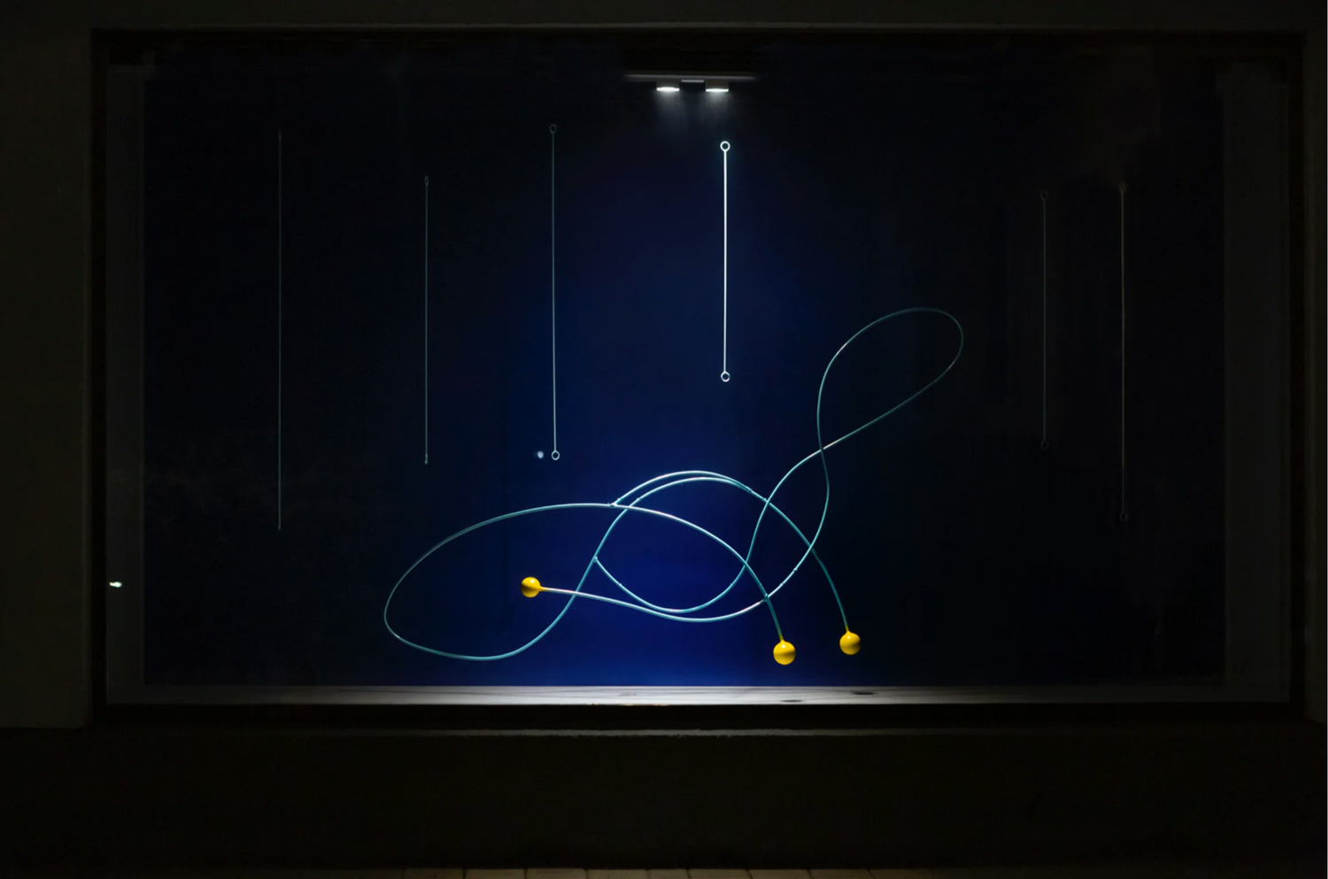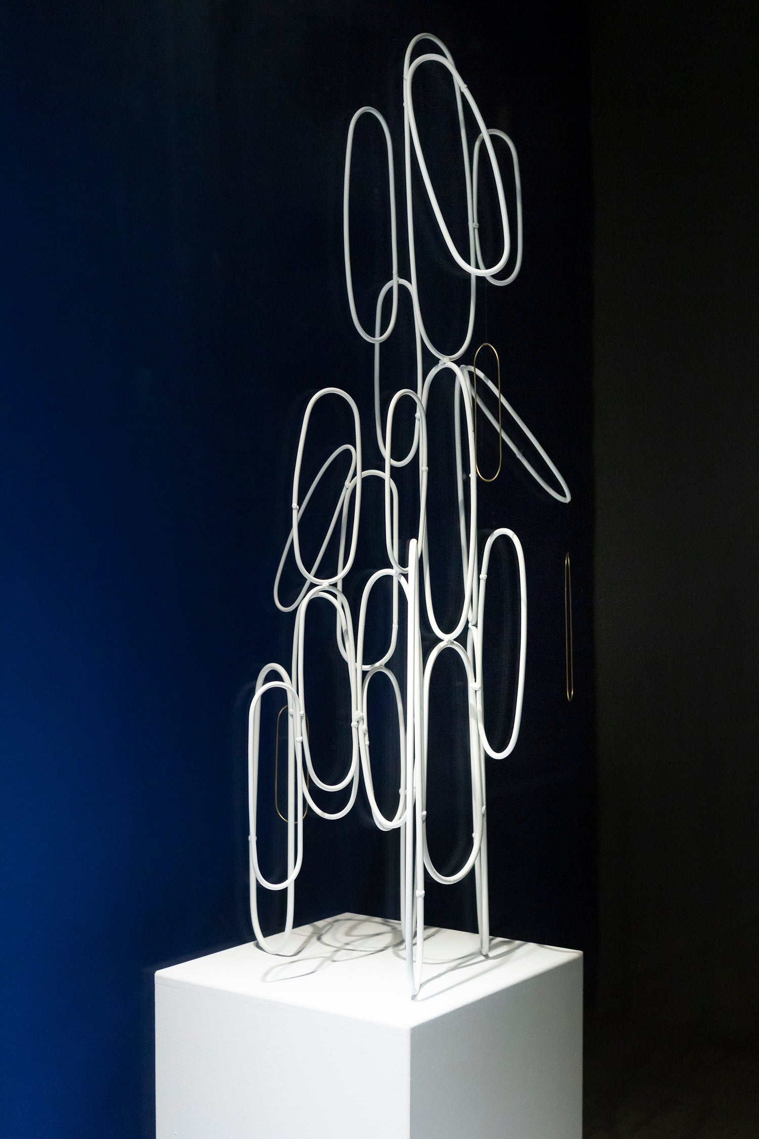 Viktoria Morgenstern sees her sculptures as intuitive drawings in space. The aesthetic of all the works remains reduced, characteristic of the artist's practice, where there is not a single line or color without function or reason. Everything consists of forms made of steel and brass, a material that not only has a grounding effect, but also allows the artist to connect with the world on a much deeper level.Fig. above: Viktoria Morgenstern, We all drink the same water, 2022
