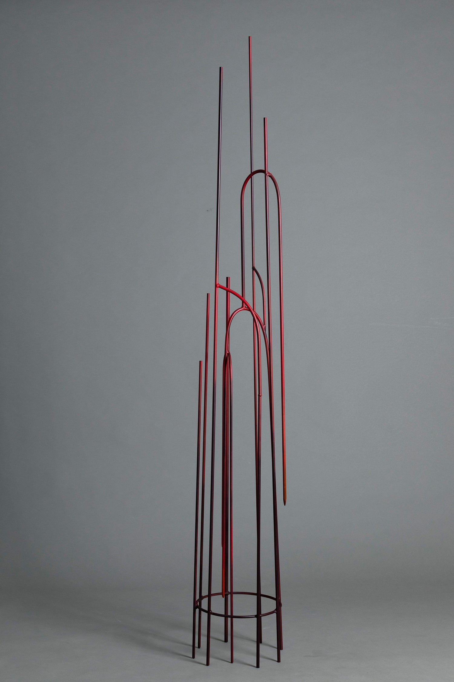 Viktoria Morgenstern, Into the Inferno #1, 160 x 50 x 35 cm, hand-painted steel, brass, 2023