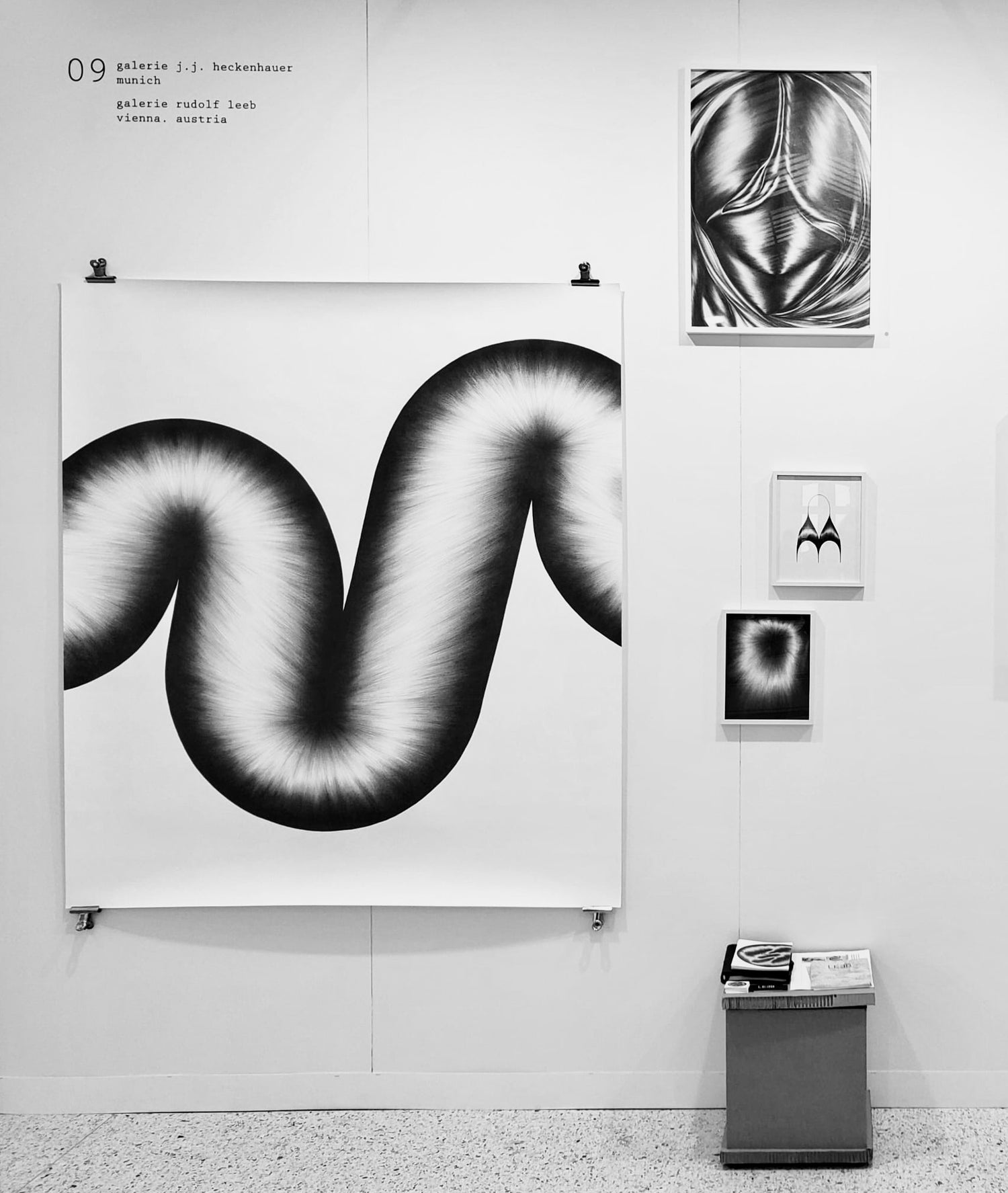 At Paper Positions, Lavinia Lanner shows, among other things, works from the series of "Portals," which are designated whole surfaces and sketch a twist toward an opening. In a more recent series, on the other hand, she depicts the process itself: it's about entering and leaving a surface, ascending and descending from a stage - in other words, a flow, a movement. Just as the artist sees her oeuvre as a coherent whole that - if you will - revolves around something like drawing for the sake of drawing, she also conceives her most recent works as excerpts of a world of processes that is only completed by the movements of the audience when viewing them.