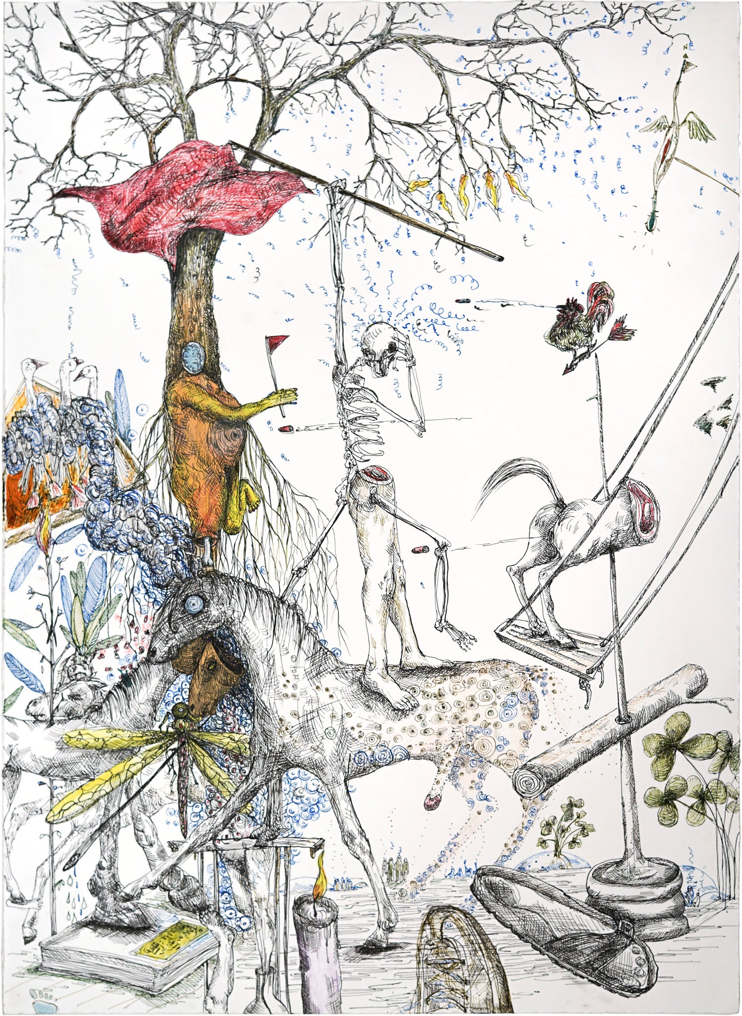 Wild at Heart_01, 2025, 50 x 70 cm, ink and acrylic on laid paper