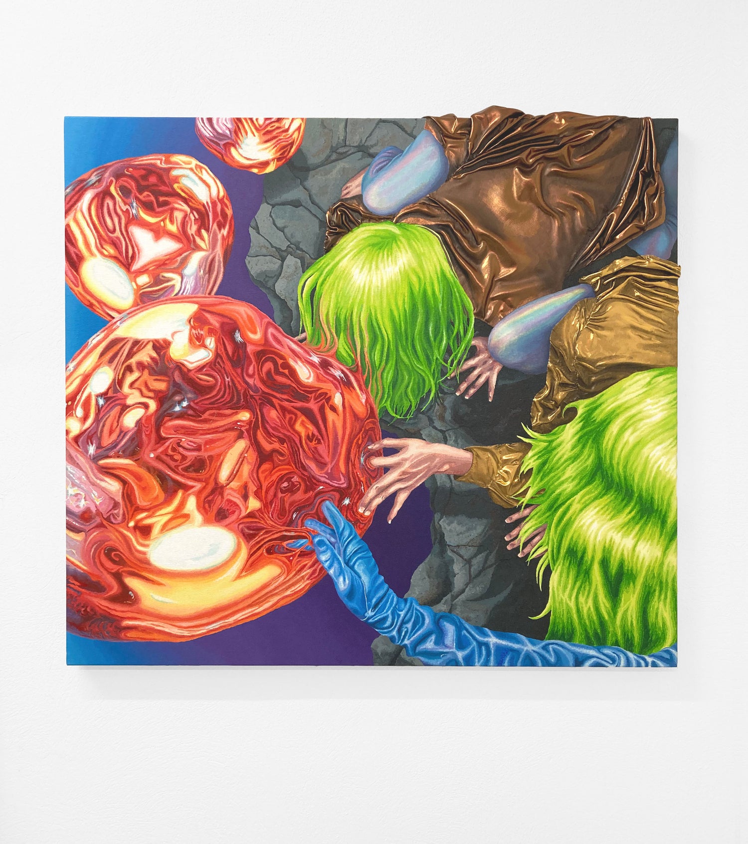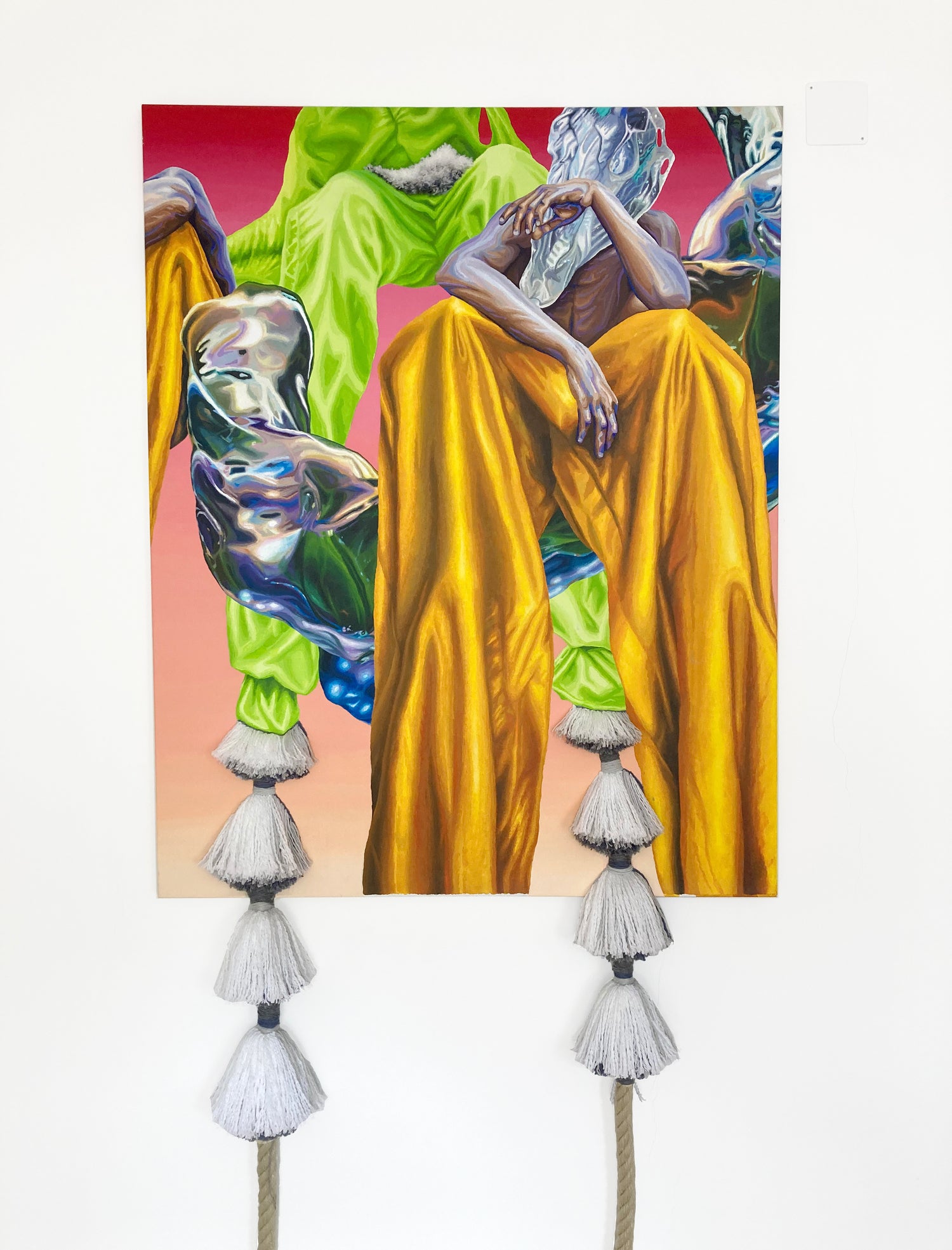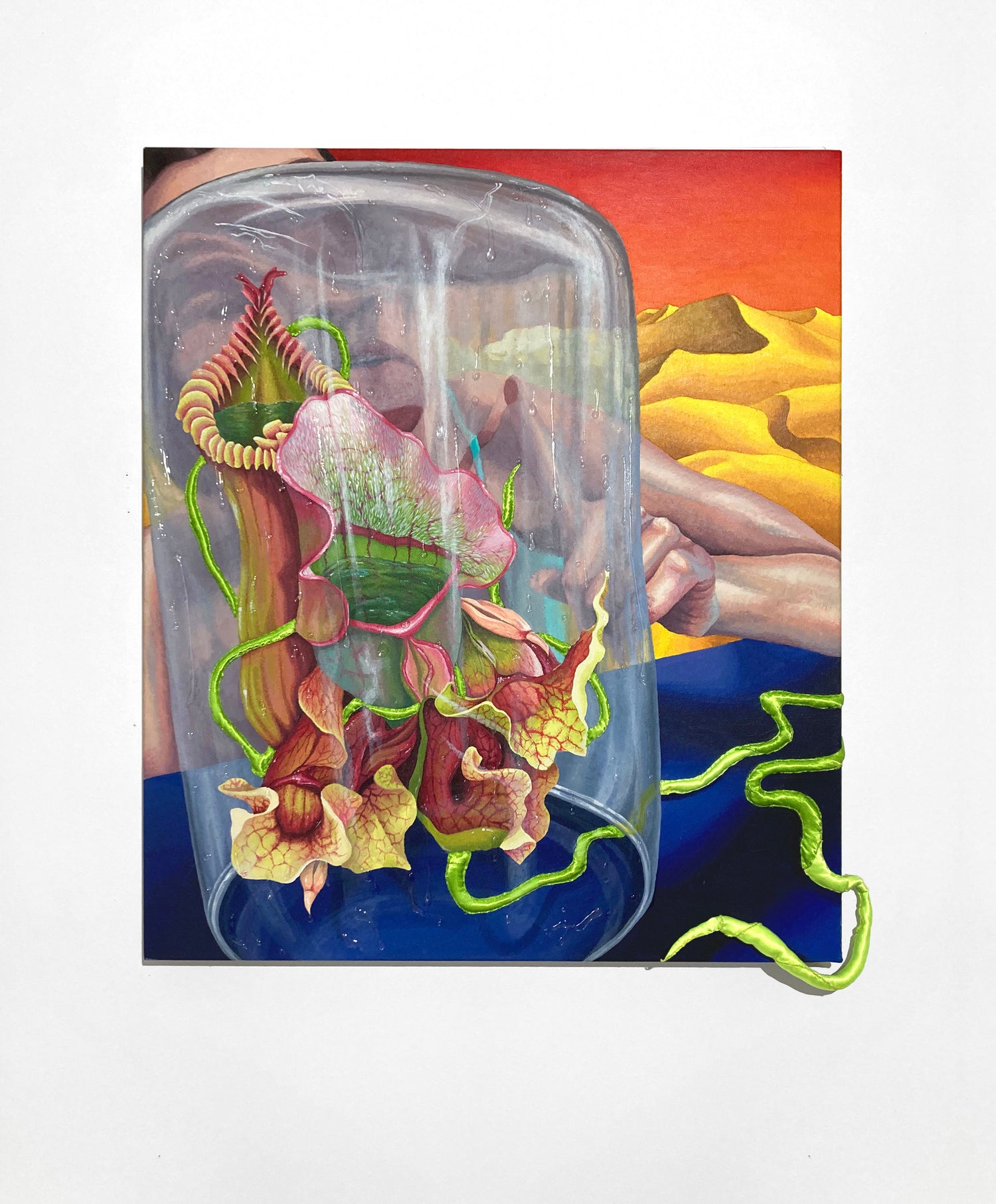 Beáta Hechtová, Uplift: acrylic on canvas / embroidery, collage, 120 x 150 cm, 2022