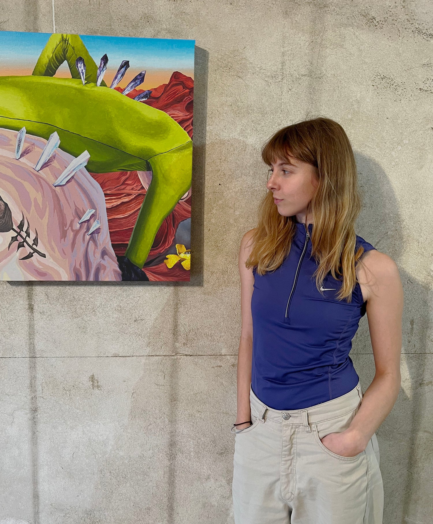 Artist Beáta Hechtová next to her painting "Rite Flow" in the exhibition HEADS OR TALES in September 2022 in Vienna.