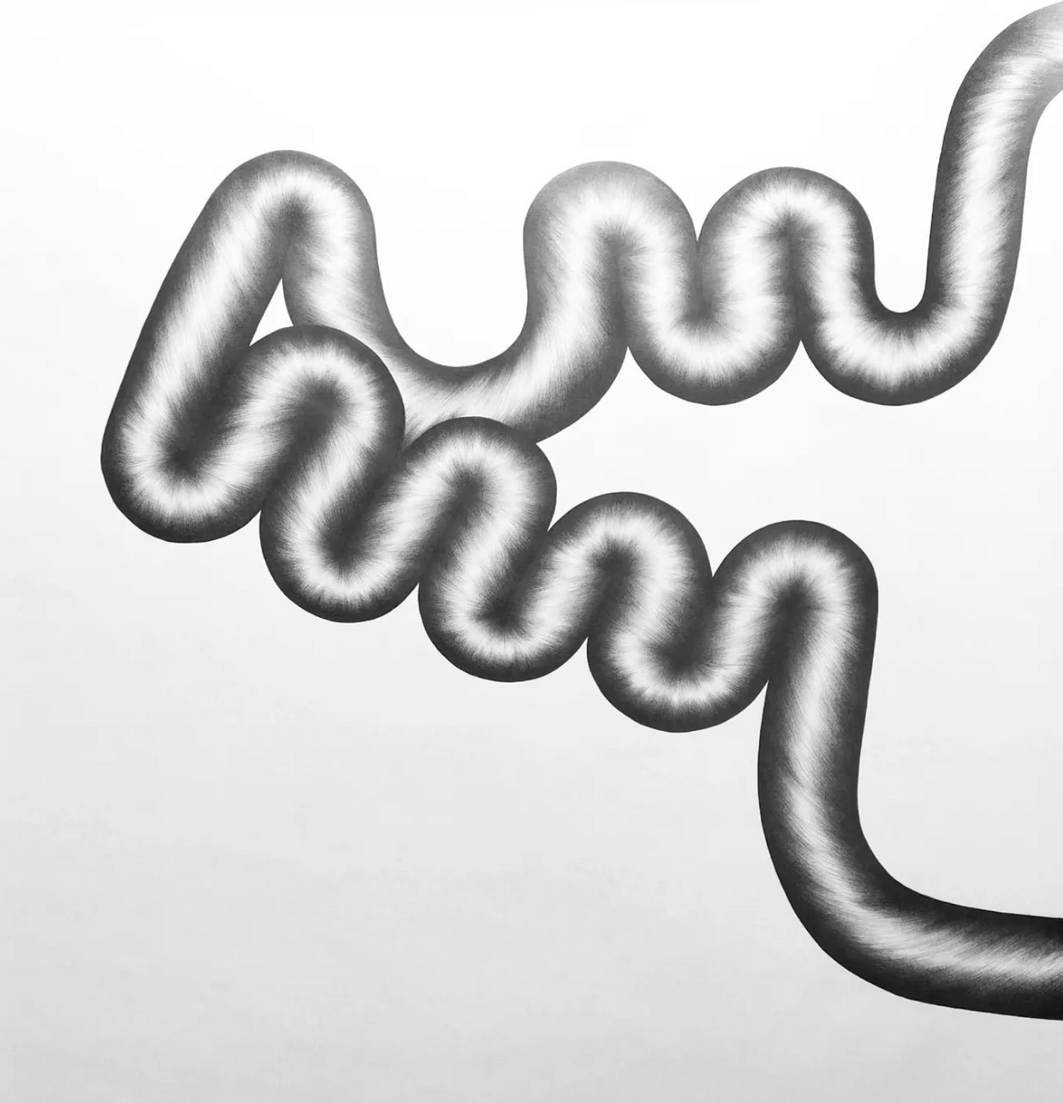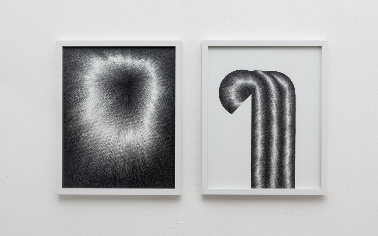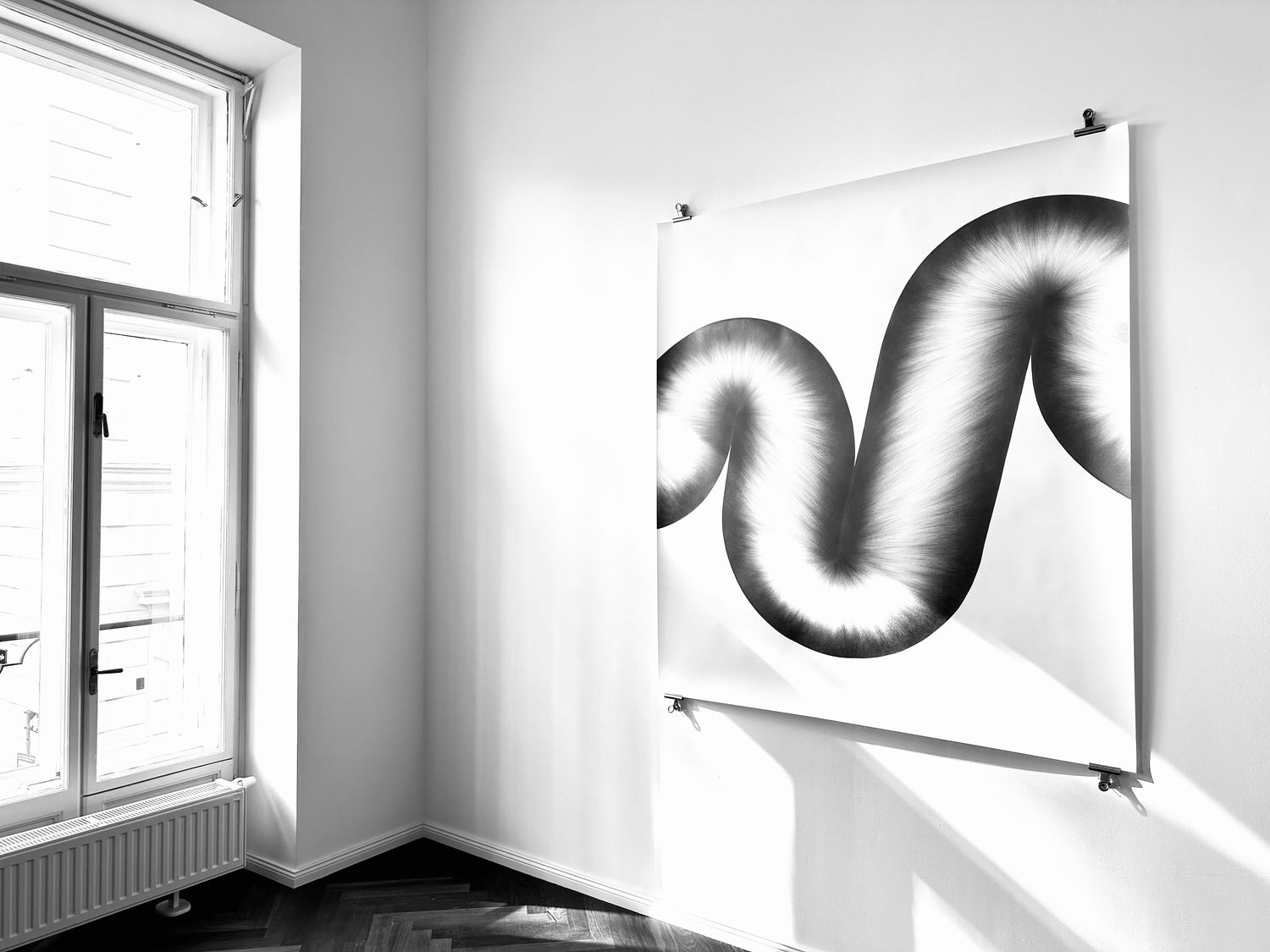 The medium of my work is drawing. This continues to open up new possibilities of expression for me, even after numerous years of occupation. A central aspect is the ad absurdum leading of the medium, which is as simple as it is complex. The series "brushstrokes", for example, consists of drawn large-format brushstrokes. What seems to have been created in a few moments is actually the result of a meticulous reconstruction consisting of thousands of individual lines. The line as a central element runs through my work just as much as the means I use. The series "fighter eraser" has its origins in my collection of erasers and the drawings in this series show individual set pieces from them, but without representing them in a concrete and representational way. The ambiguity of the abstract is a high value for me. Whether objects seemingly covered in hair represent body parts or are reminiscent of other objects of organic origin - such as the series "Frutti di Haare", which was created in Italy - is of secondary importance to me. While I consistently use the 3B strength in my choice of drawing medium, the pencil, as discussed in my diploma show "3B or not 3B", the series "fighter eraser" uses a unique pastel coloured pencil. Not only the means, but also the artistic practice is a recurring theme in my work. The exhibition at the Austrian Cultural Forum in Rome was entitled "nulla dies sine linea" - the works shown there revolve once again around my everyday life as an artist. Not a day without a line, without activity, without evolution in the broader sense. Capturing everyday life and my surroundings with the eyes and means of a draughtswoman is the basis and starting point of my work.
