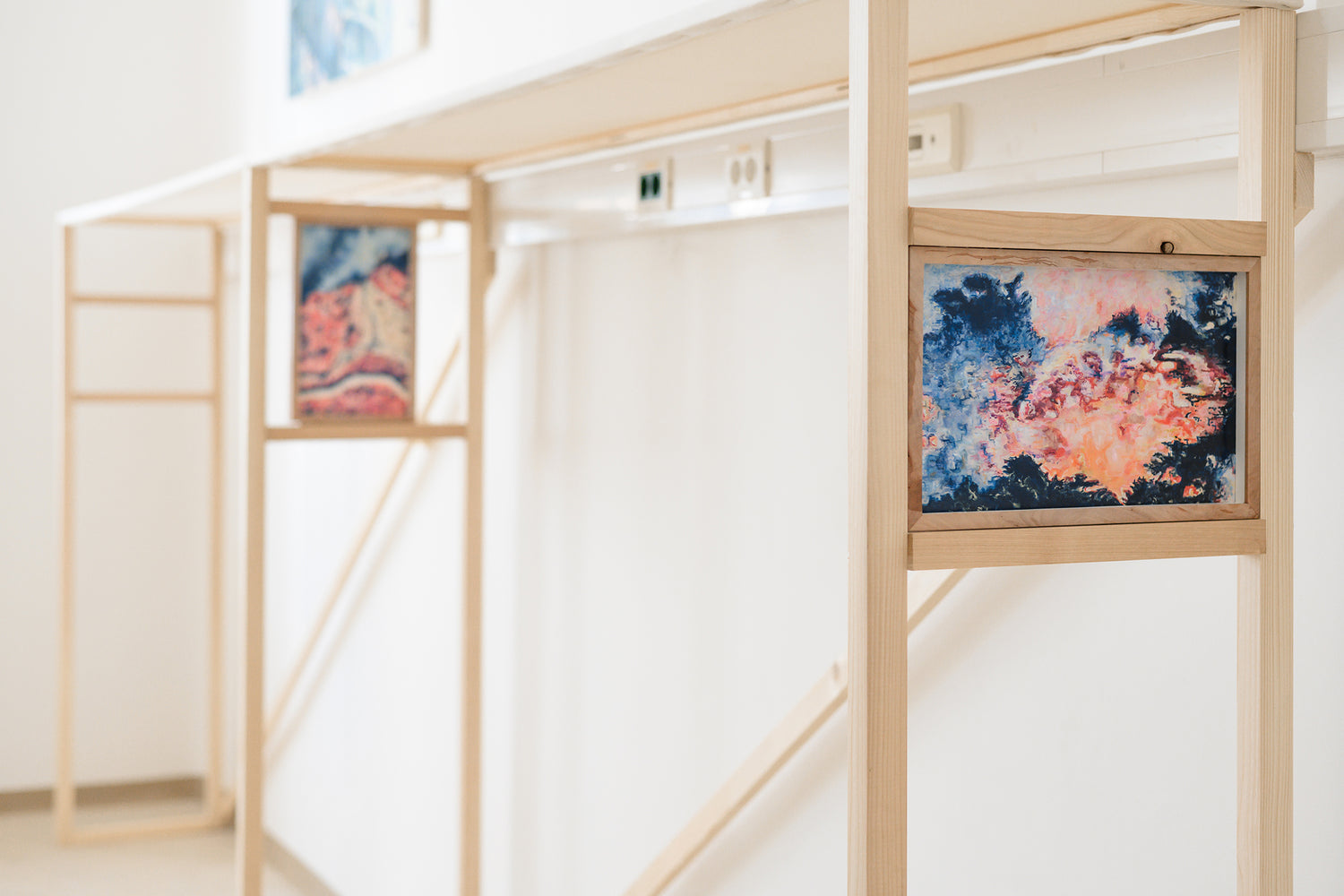 Exhibition view / Apollo grabbed the bad conscience. / Paul Robas - Lorenz Kunath - Emma Kling, 2023, Apollo Garage: 1070 Vienna, Apollogasse 11-13