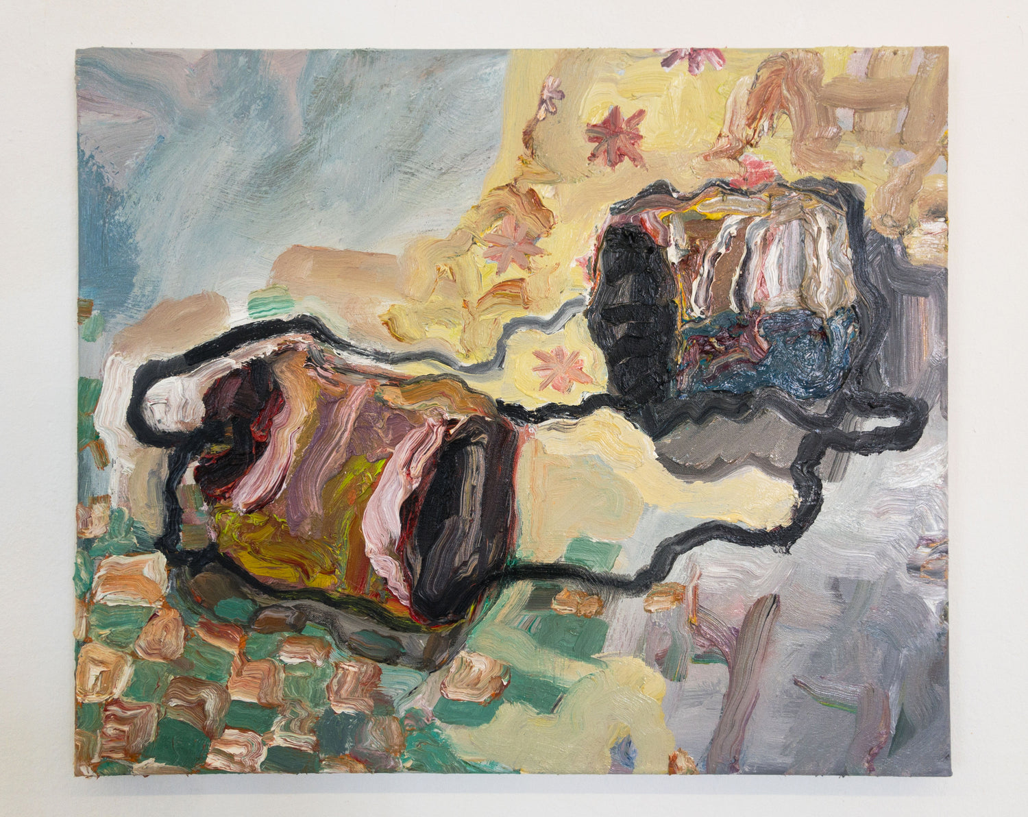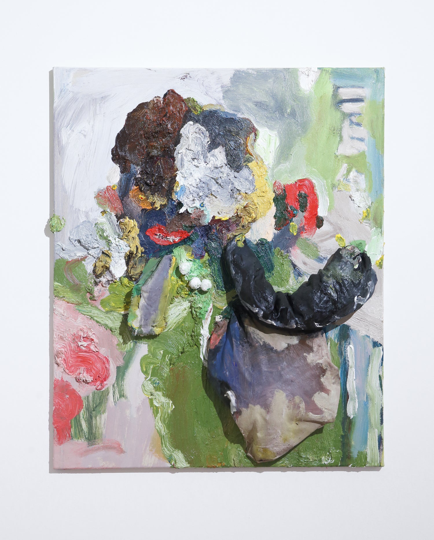 Portraits (thats not us), 2023, mixed media on canvas, 90 x 75 cm