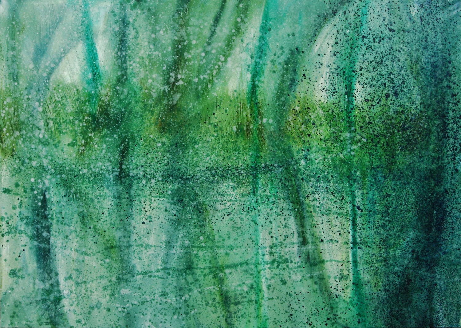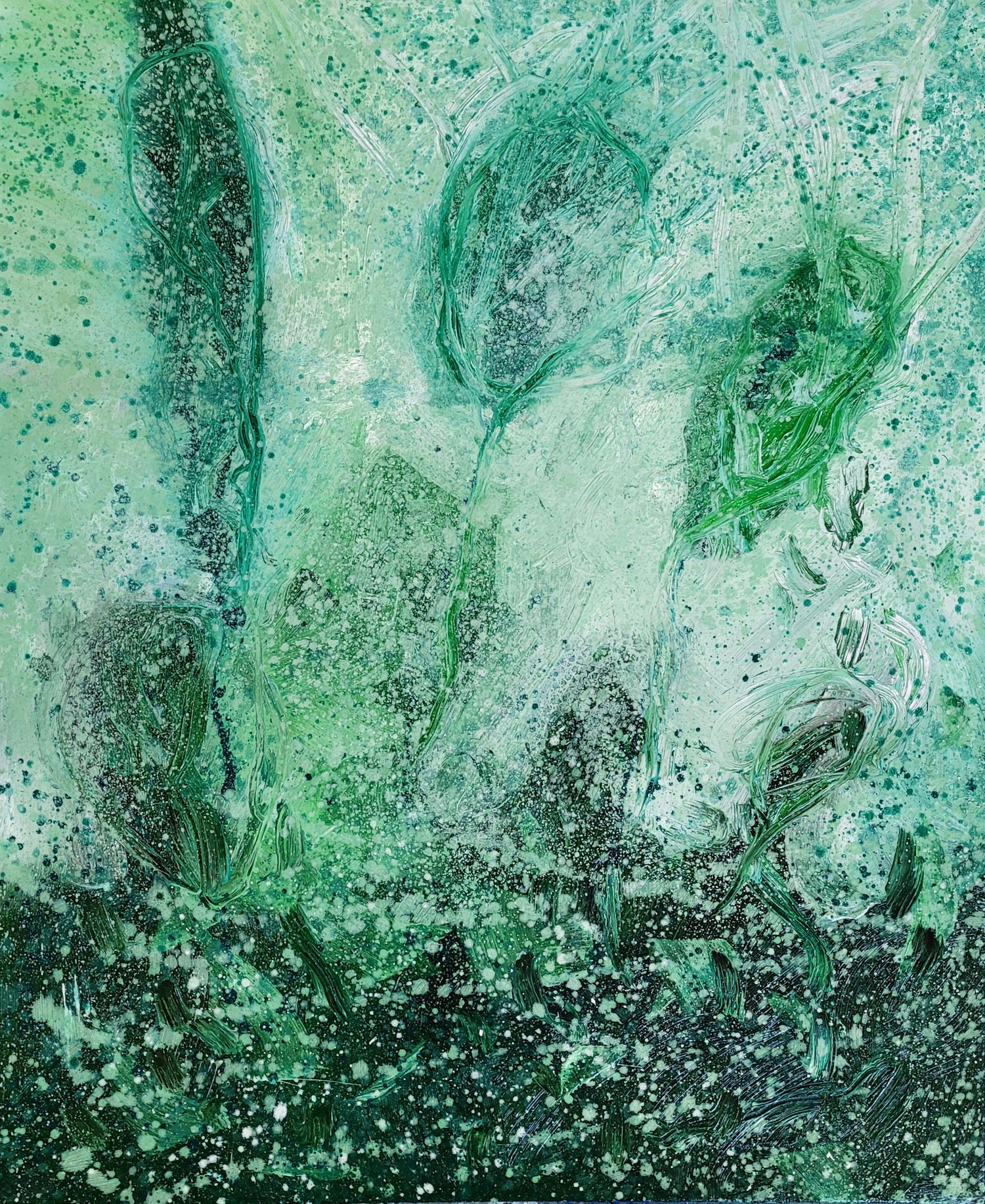Reiner Heidorn lives and works in Weilheim, Bavaria. As a painter, he processes the relationship between man and nature in his oversized and mostly monochrome paintings. The desire to unite with nature and even dissolve into it - Reiner Heidorn gives form and color to this thought. Over the years of his work, he has developed his own unique painting technique and gave it a name - "Dissolutio", which means disappearance.His paintings consist of microscopic elements, flowing arrange various shades of green and blue in smooth transitions on the canvas.
