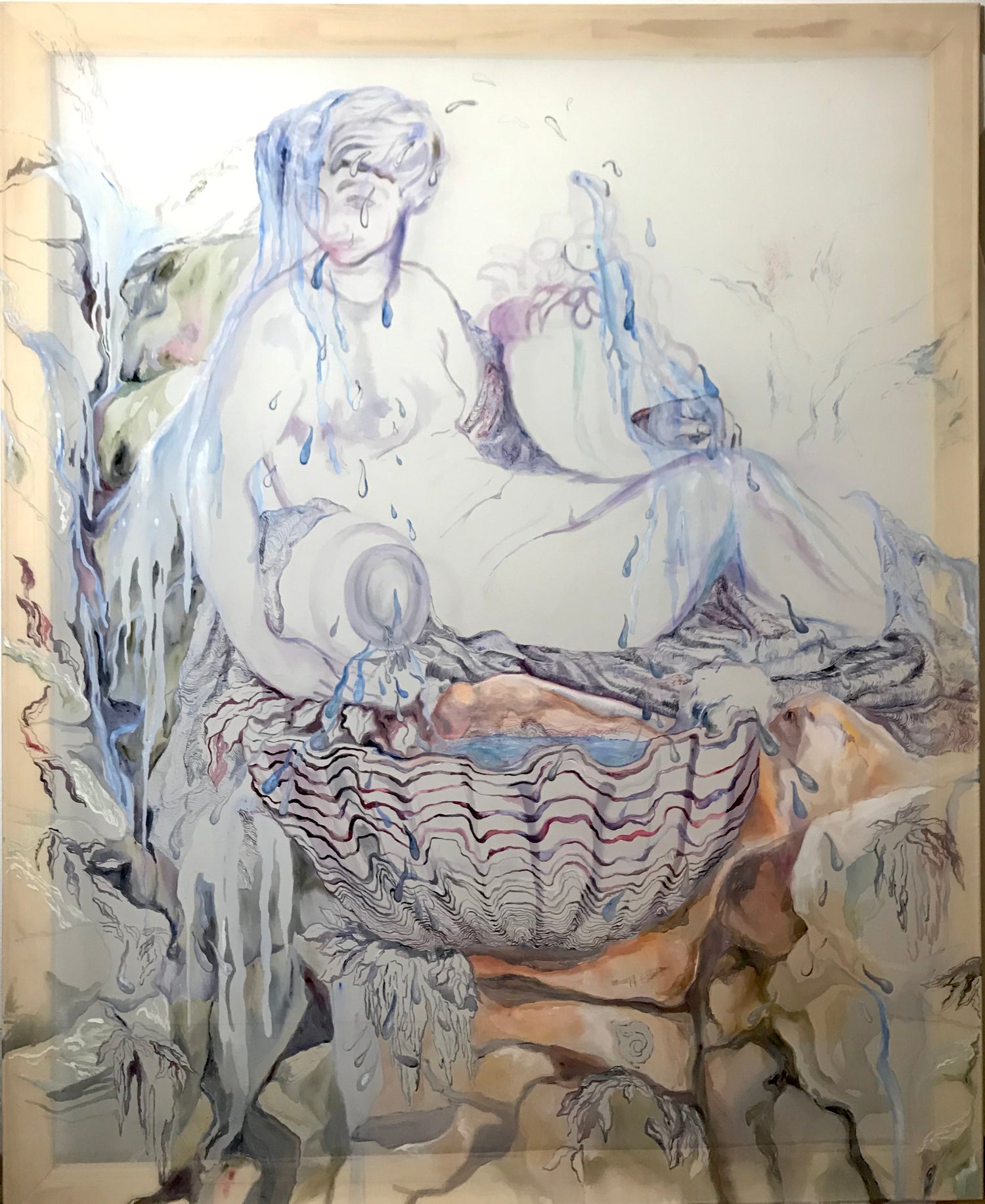 Schalentanz - Susanna im Bade, Tusche, Acryl und Öl auf Leinwand, zweiteilig, 115 x 180 cm, 2022