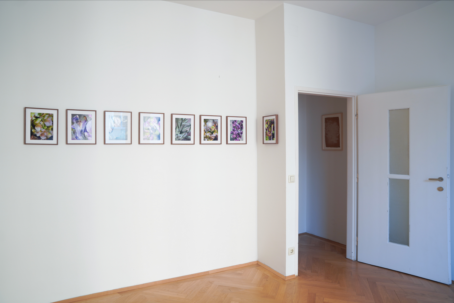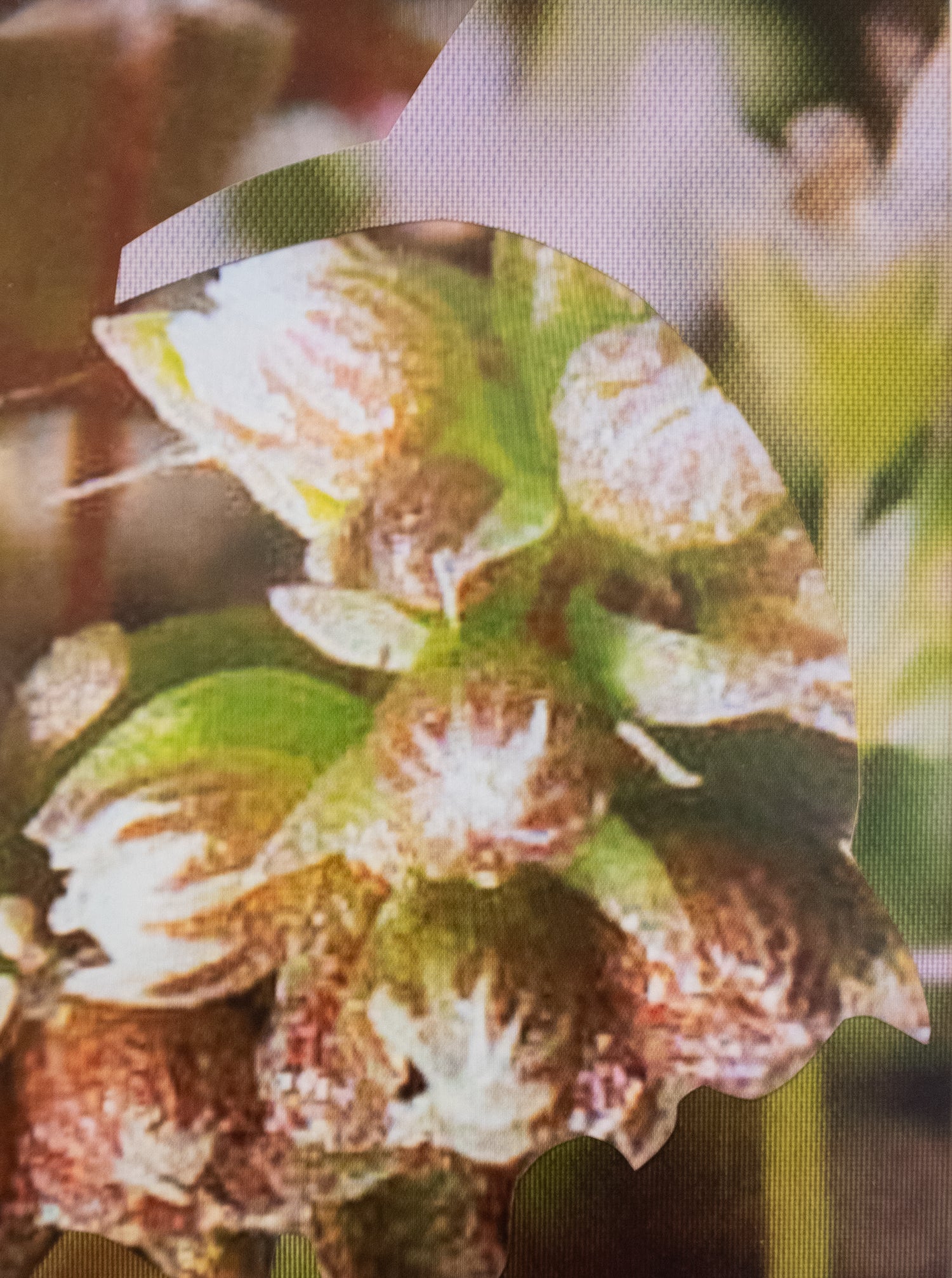 Mit Fragmentarium zeigt die aktuelle Ausstellung des Vienna Collectors Club Arbeiten der Serie Collected der Künstlerin Michaela Putz. Dazu recherchiert Putz in digitalen Bildarchiven (1) nach Abbildungen gefährdeter oder in Österreich bereits ausgestorbener Pflanzen. Die selektierten Bilddaten werden sodann bearbeitet und von der Benutzeroberfläche des Bildschirms oder Handys abfotografiert und als C-Prints belichtet. Sohin werden nicht nur die eigentlichen Motive, sondern auch die Oberflächen der verwendeten Kommunikationsmittel, auf denen die Künstlerin scrollt, wischt oder partiell in das Motiv hineinzoomt (samt deren Zustand – darunter Kratzer, Staub, Fingerabdrücke – sowie das auf ihnen auftreffende Blitzlicht), aber auch deren Steuerungselemente, die die Künstlerin während ihrer Arbeit verwendet, mit in das fertige Kunstwerk inkorporiert.