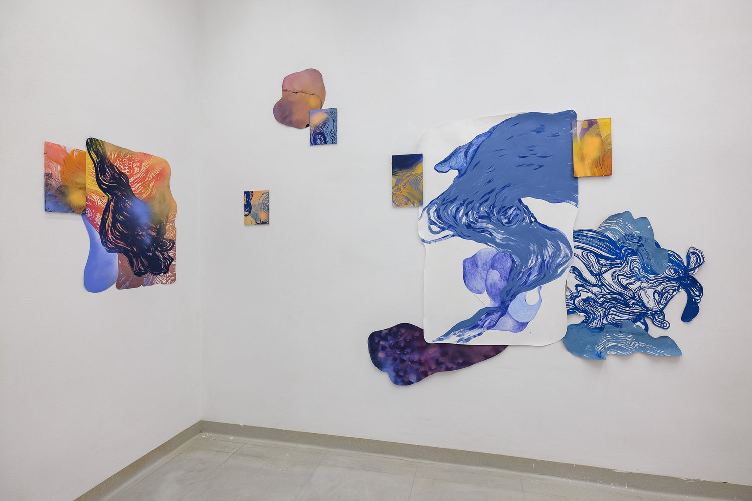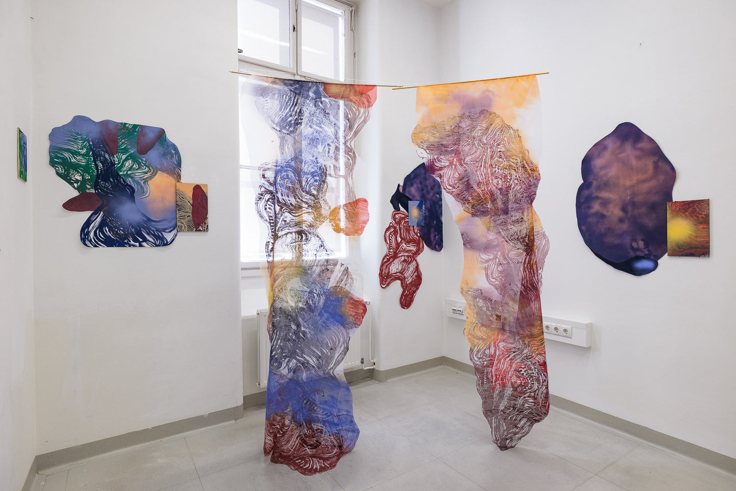 Zhanina Marinova, Siebdruck auf Papier und Plexiglas, Ausstellungsansicht "Bedtime Stories"